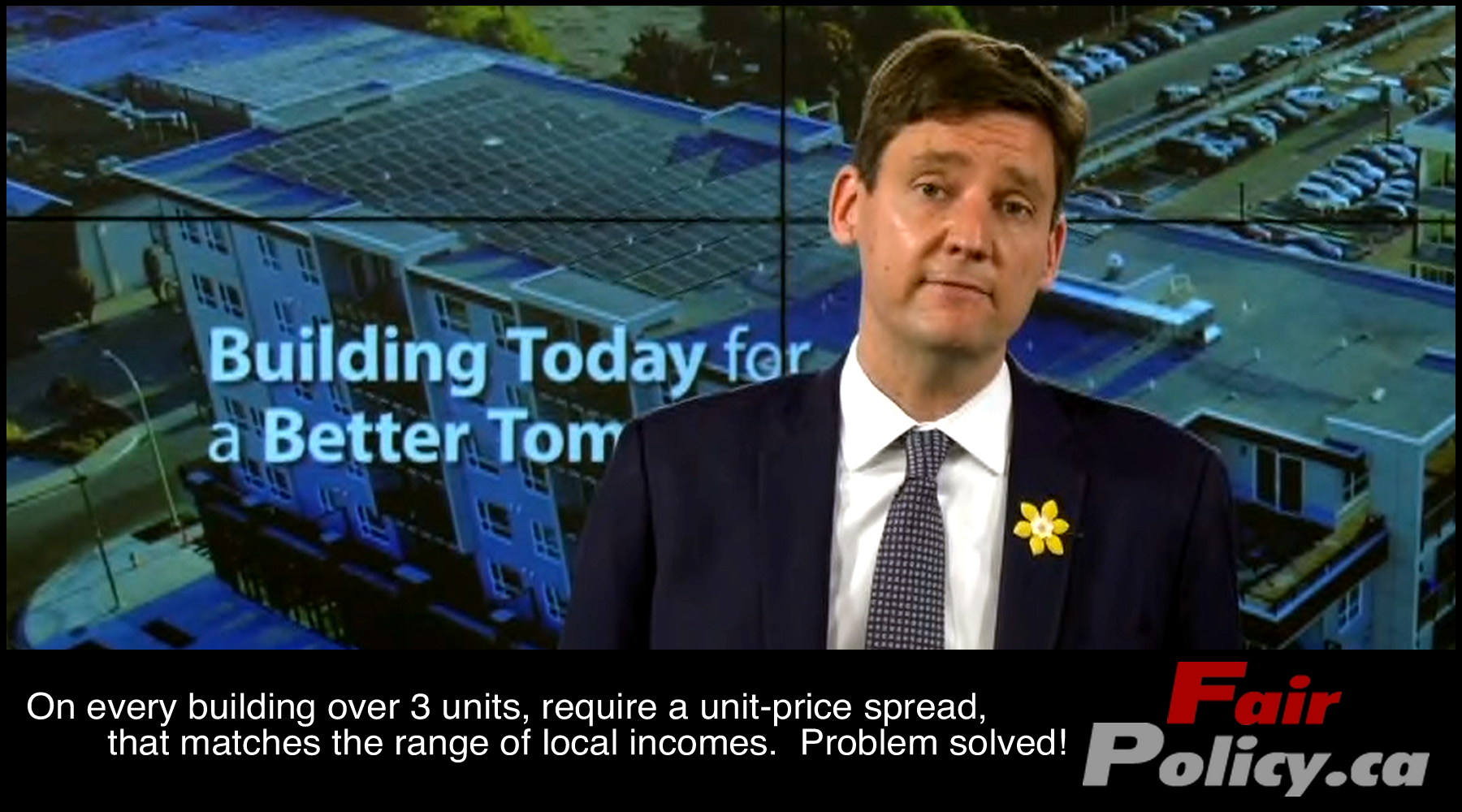 Affordable housing can be fixed by simply requiring every new structure over 3 units to include a complete spread of prices that match incomes in the local area, regardless of zoning.